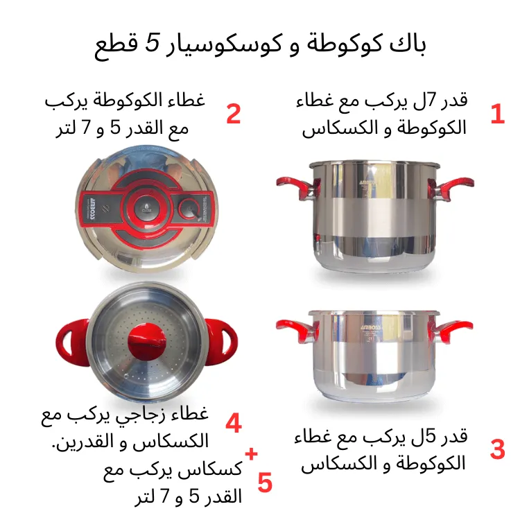 كوكوطة 5 لتر زائد كوكوطة 7 لتر زائد الغطاء زائد الكسكسار والغطاء