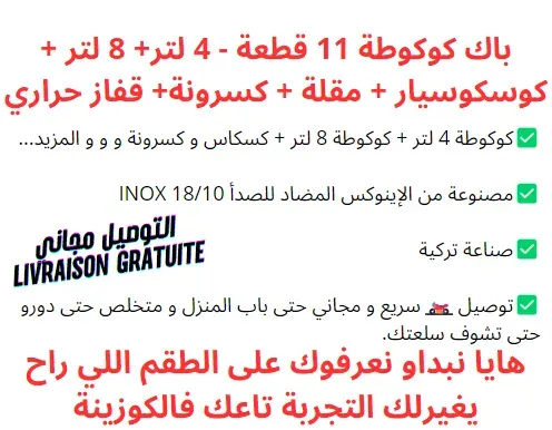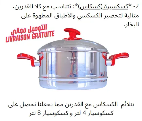 كوكوط 11 قطعة✅كوكوط 8 لتر + ✅غطاء للكوكوط يركب عليهم في زوج + ✅ كسكاس +✅ شبكة القليان +✅ غطائين واحد زجاجي والاخر اينوكس ✅ كصرونة + ✅ مقلة + ✅ جوان اضافي + قفاز حراري + 🔴توصيل مجاني 🔴